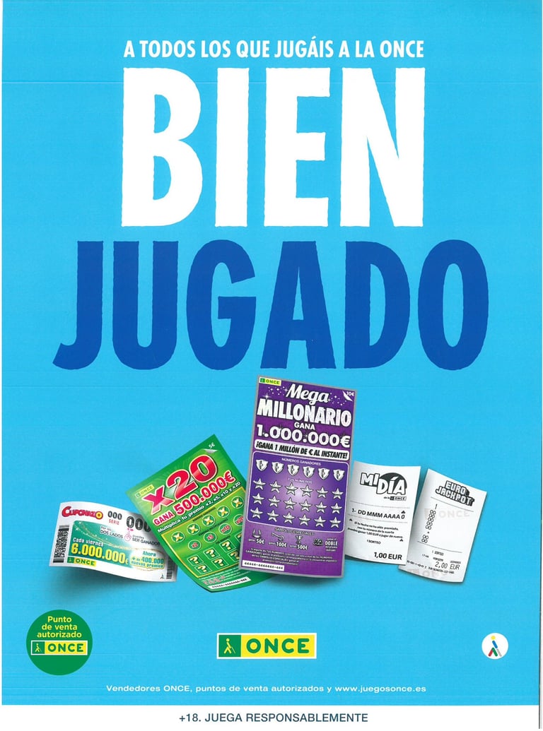 Explora la emoción de participar en los sorteos diarios y rascas de la Organización Nacional de Ciegos Españoles (ONCE) a través de Envíos Yien. Pertenecemos a la Red Comercial Autorizado para el Canal Físico.